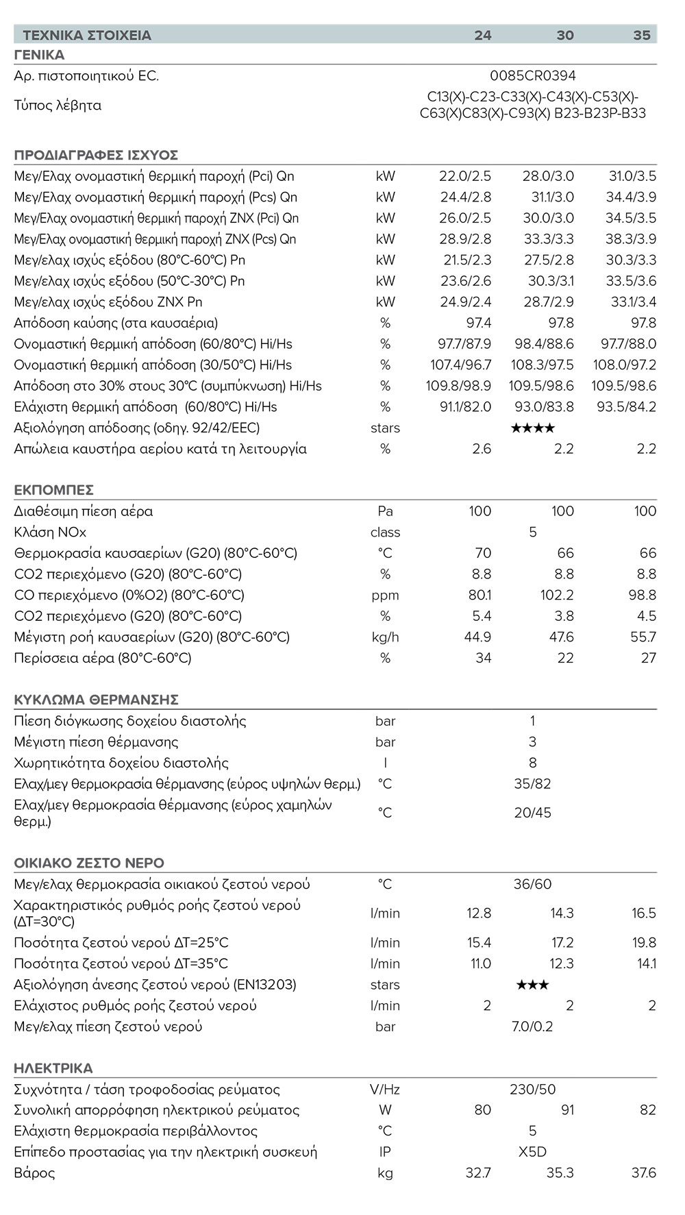 - Απόρριψη καυσαερίων 80, 60, 50 mm.